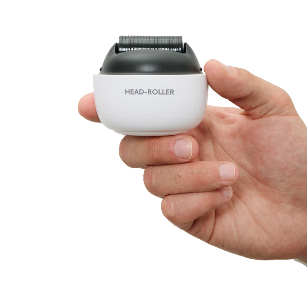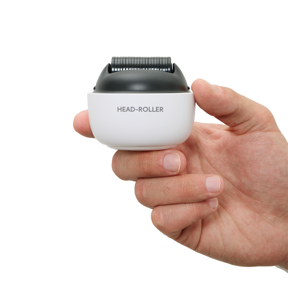 Der Head Roller: Dieses mechanische, mikroperforierende Werkzeug verursacht eine kontrollierte Mikroentzündung der Kopfhaut, wodurch die Geweberegeneration und die Kollagenproduktion aktiviert werden. Vor allem aber ermöglicht er eine bis zu fünfmal effizientere Aufnahme der anschließend aufgetragenen Wirkstoffe, wie z. B. Redensyl®.