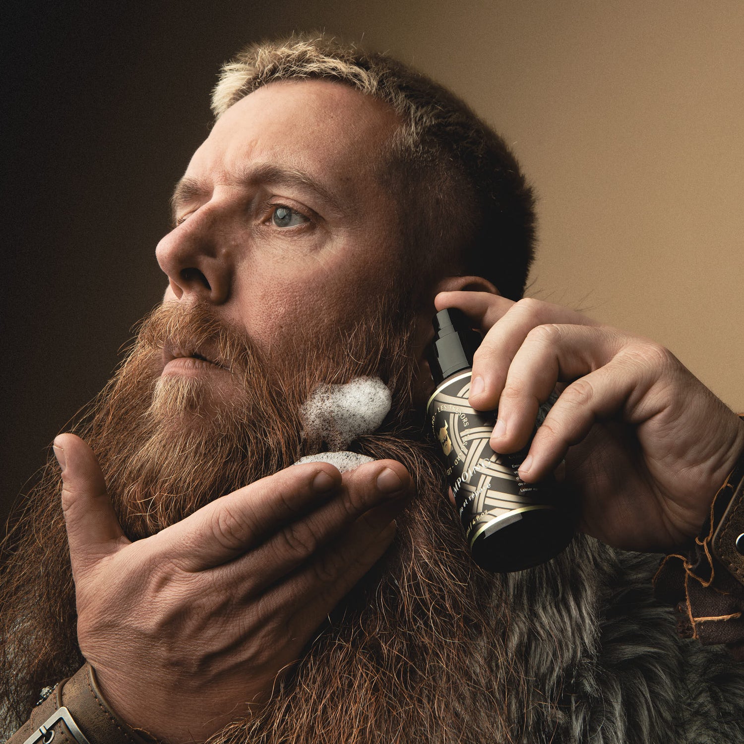 Befeuchten Sie Ihren Bart, bevor Sie das Shampoo auftragen. Massieren Sie es sanft ein und spülen Sie es aus. Ihr Bart hat ein neues Aussehen!